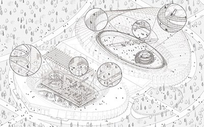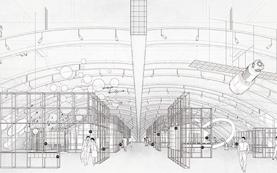 Le prime riflessioni sul posto sono state fondamentali. L'idea è quella di un percorso continuo sviluppato su tre quote differenti e che copre l'intera superficie dell'esistente: l'interrato, lo zero, la passeggiata sospesa. Un salto dal microscopico al macroscopico ispirandomi al celebre cortometraggio "Powers of Ten", realizzato nel '77 dalla coppia statunitense Charles e Ray Eames. Rispettivamente introducono il visitatore alle scienze naturali, passando per il museo della tecnica, fino a raggiungere il "salto alla 10000", l'universo. Così, come un esercizio di utopia a scala monumentale nasce il museo della scienza, o meglio, un distretto delle scienze, potenziato dalla presenza di prestigiose istituzioni. Parlo dei numerosi centri di eccellenza scientifica che si trovano nell'intorno come l'Agenzia Spaziale Italiana, la stessa Università di Tor Vergata, l'Osservatorio e ancora l'Istituto Nazionale di Astrofisica e tanti altri. Ciascuno di questi centri troverebbe una propria estensione all'interno del disegno proposto, dando vita a un luogo di scambio delle conoscenze. Nel mio progetto, un luogo attualmente irrisolto può diventare qualcos'altro rigenerando l'intera area in cui è collocato.