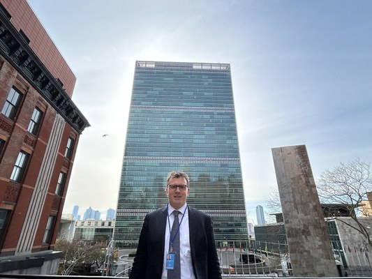 Il Professor Alberto De Franceschi davanti alla sede dell'ONU a New York
