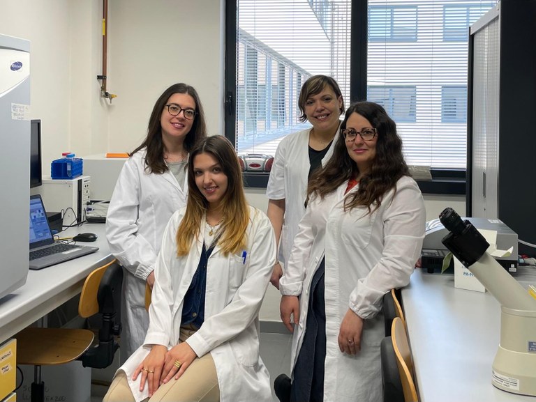 Il team Unife che prende parte alla ricerca: da sinistra, le Dottoresse Bianca Antonica, Miriana Grisafi, Francesca Salvatori, Elisabetta D'Aversa del Dipartimento di Medicina Traslazionale e per la Romagna.