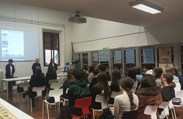 Il percorso, avviato lo scorso 6 novembre, ha visto coinvolte studentesse e studenti della classe 5C in un’attività formativa che ha messo in dialogo passato e futuro dell’architettura. La prima fase ha avuto luogo nell'Archivio Savonuzzi, dove ragazze e ragazzi hanno avuto l'opportunità di esplorare disegni storici, fotografie e progetti originali dell’ ingegnere e architetto ferrarese Carlo Savonuzzi, (1897-1973). Tra i progetti analizzati, spiccano edifici residenziali privati (Villino del Conte Aventi a Portomaggiore -1929, Casa d'abitazione per impiegati Società Gomma Sintetica in Contrada del Mirasole - 1940, Casa Pedroni Pedra in via Mentessi -1950) ed edifici con funzione pubblica (Foro Boario nel piazzale Foro Boario – 1928, Istituto di Anatomia e Istologia - 1932).