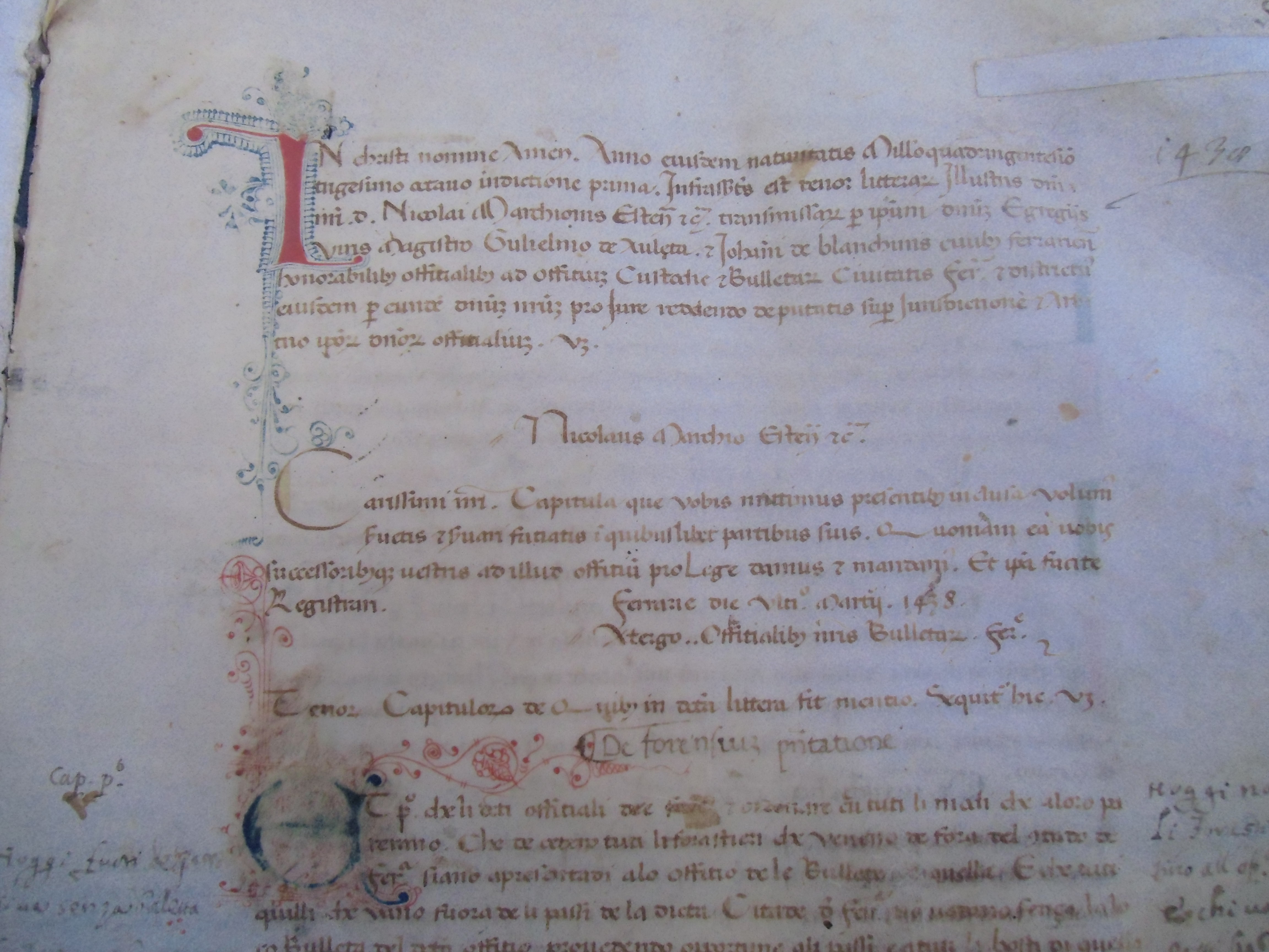 Incipit statuto bollette Fe (1438)