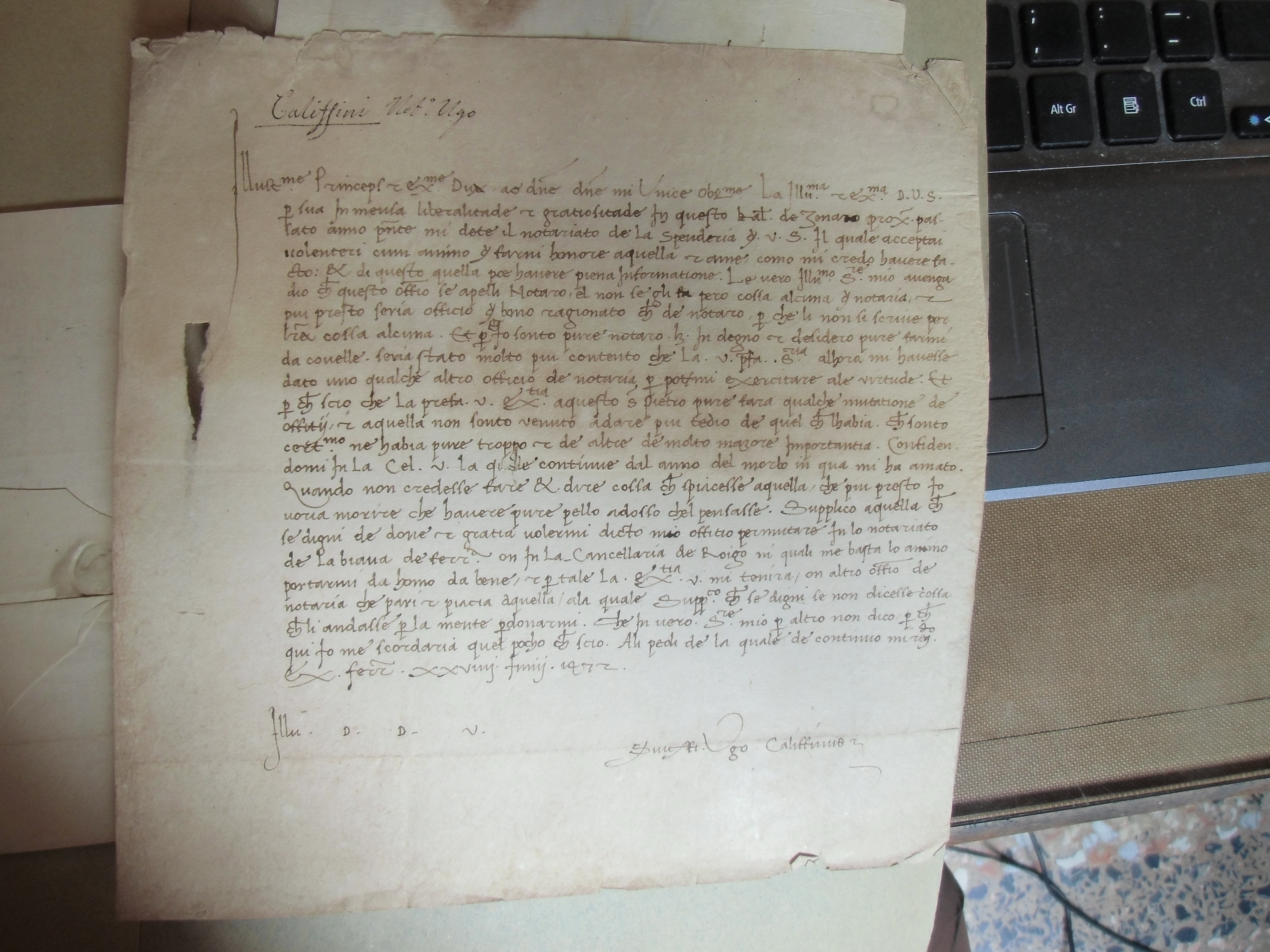 lettera di Caleffini 1472