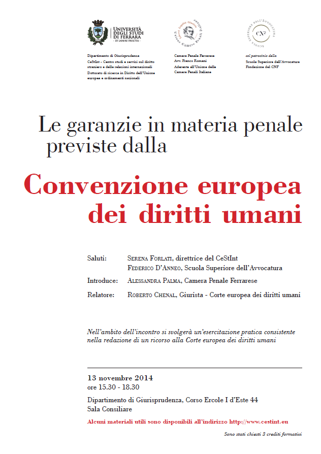 13/11/2014 15:30 - 18:30 Sala Consiliare, Dipartimento di Giurisprudenza, Corso Ercole d'Este 44 - Ferrara