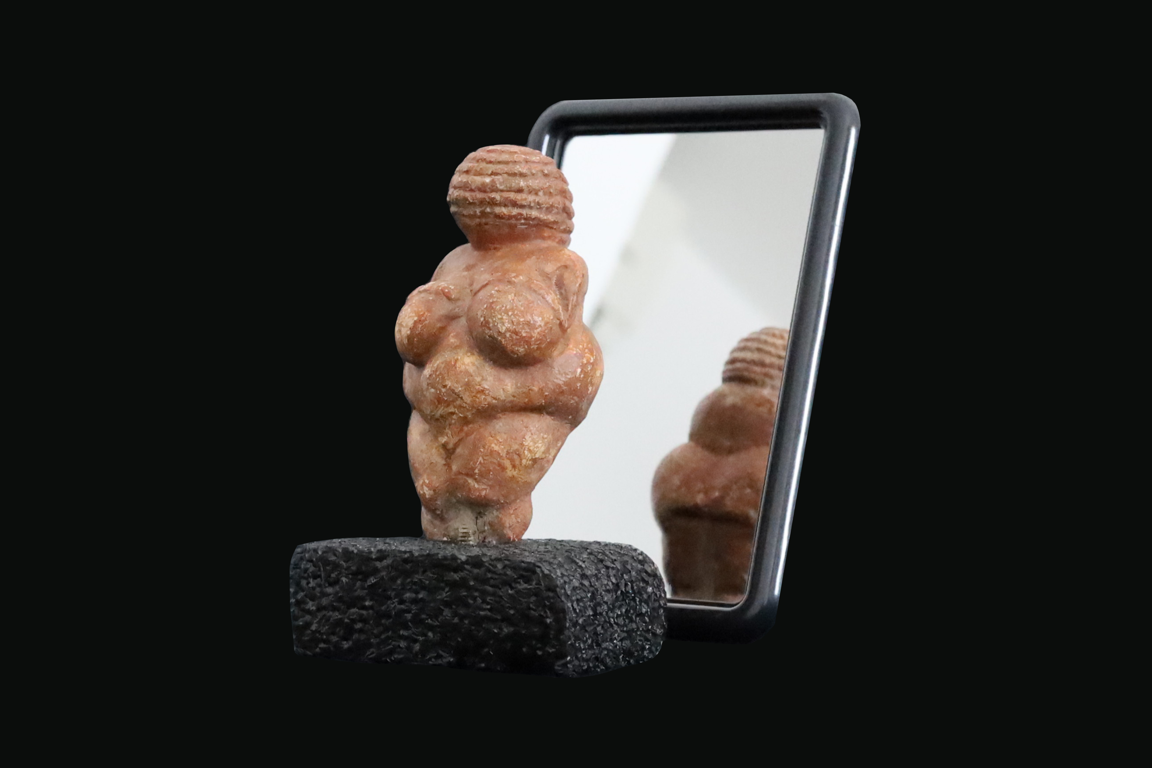 Venere di WillendorfModello della celebre statuetta rinvenuta a Willendorf, sulle rive del Danubio (Austria). Scolpita in un blocco di calcareo ed alta circa 11 centimetri, la statuetta rappresenta un'immagine femminile dal corpo tozzo. Provenienti prevalentemente da contesti incerti, le statuette femminili paleolitiche, note anche come "veneri", sono presenti durante la fase intermedia del Paleolitico superiore dalla Siberia all'Atlantico. Convenzionalmente rappresentate con tratti femminili marcati, in particolare ventre, seni ed anche, vengono perlopiù associate a riti di fecondità.