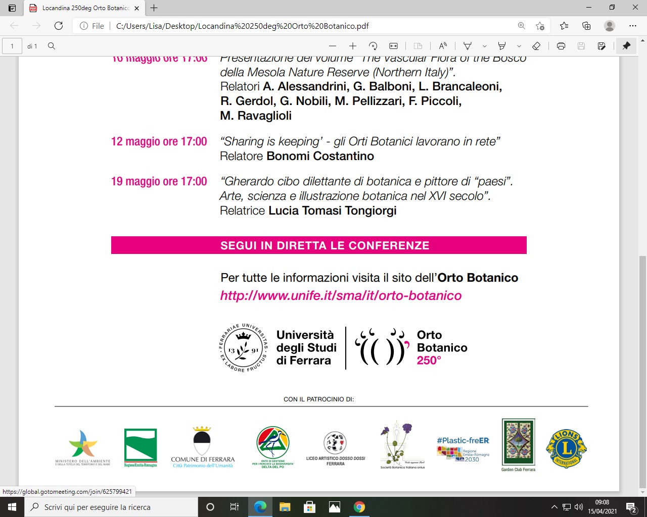 Tel. +39 0532 293782 ortobotanico@unife.it