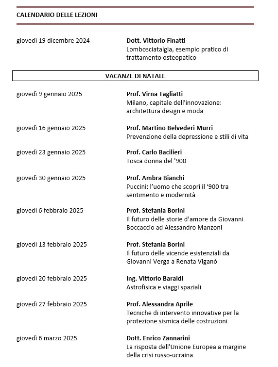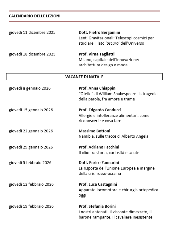 CALENDARIO LEZIONI