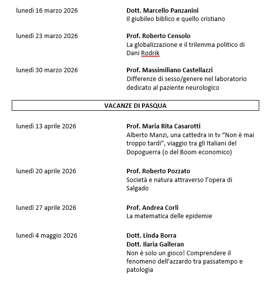 CALENDARIO LEZIONI DAL 16/3/26 AL 4/5/26