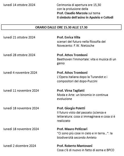 CALENDARIO LEZIONI DAL 20/10/25 AL 15/12/25