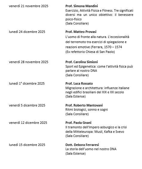 CALENDARIO LEZIONI DAL 21/11/25 AL 15/12/25