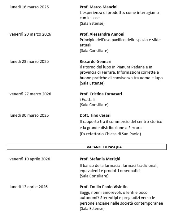 CALENDARIO LEZIONI DAL 16/3/26 AL 13/4/26