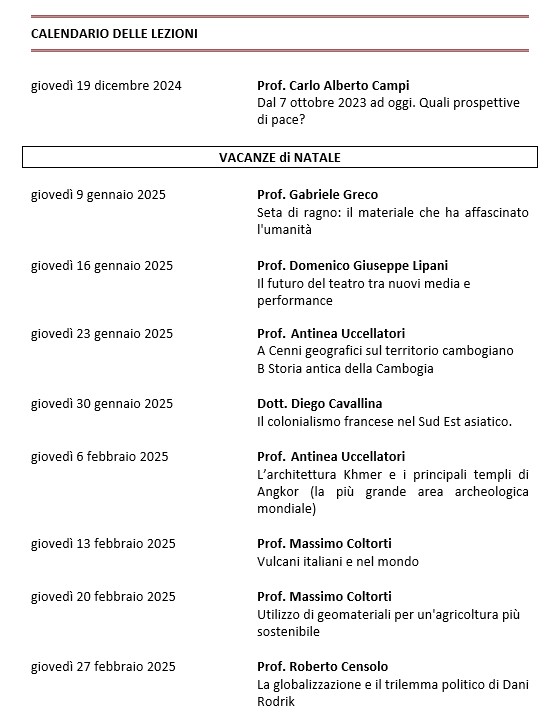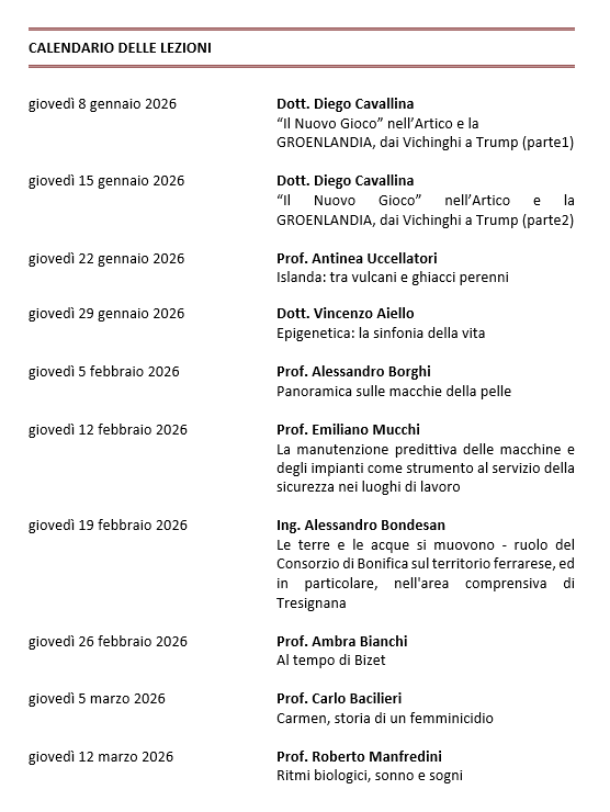 CALENDARIO LEZIONI