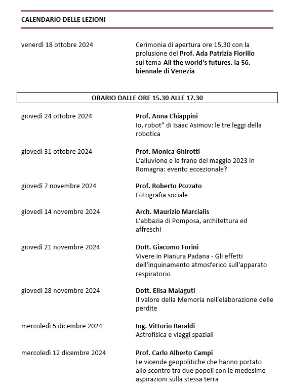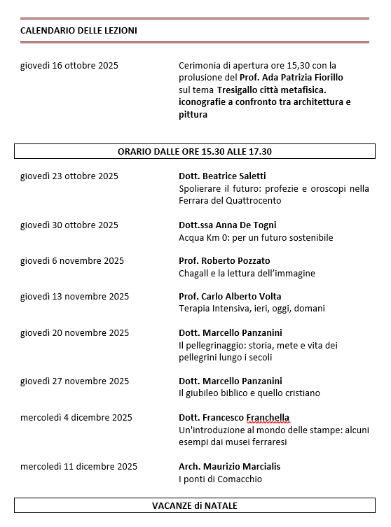 CALENDARIO LEZIONI