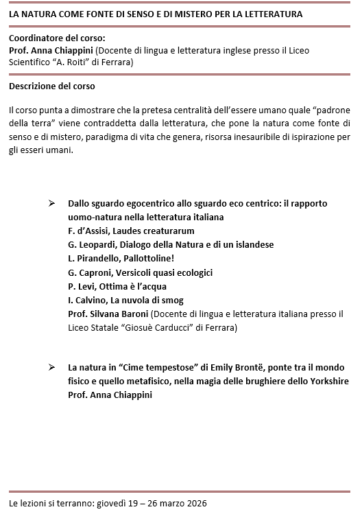 LA NATURA COME FONTE DI SENSO E DI MISTERO PER LA LETTERATURA
