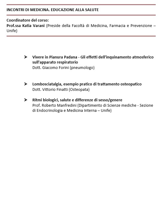 INCONTRI DI MEDICINA. EDUCAZIONE ALLA SALUTE