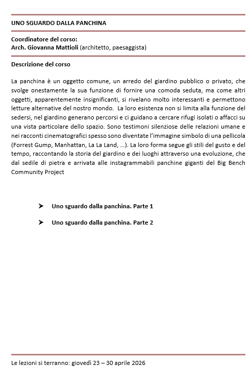 UNO SGUARDO DALLA PANCHINA